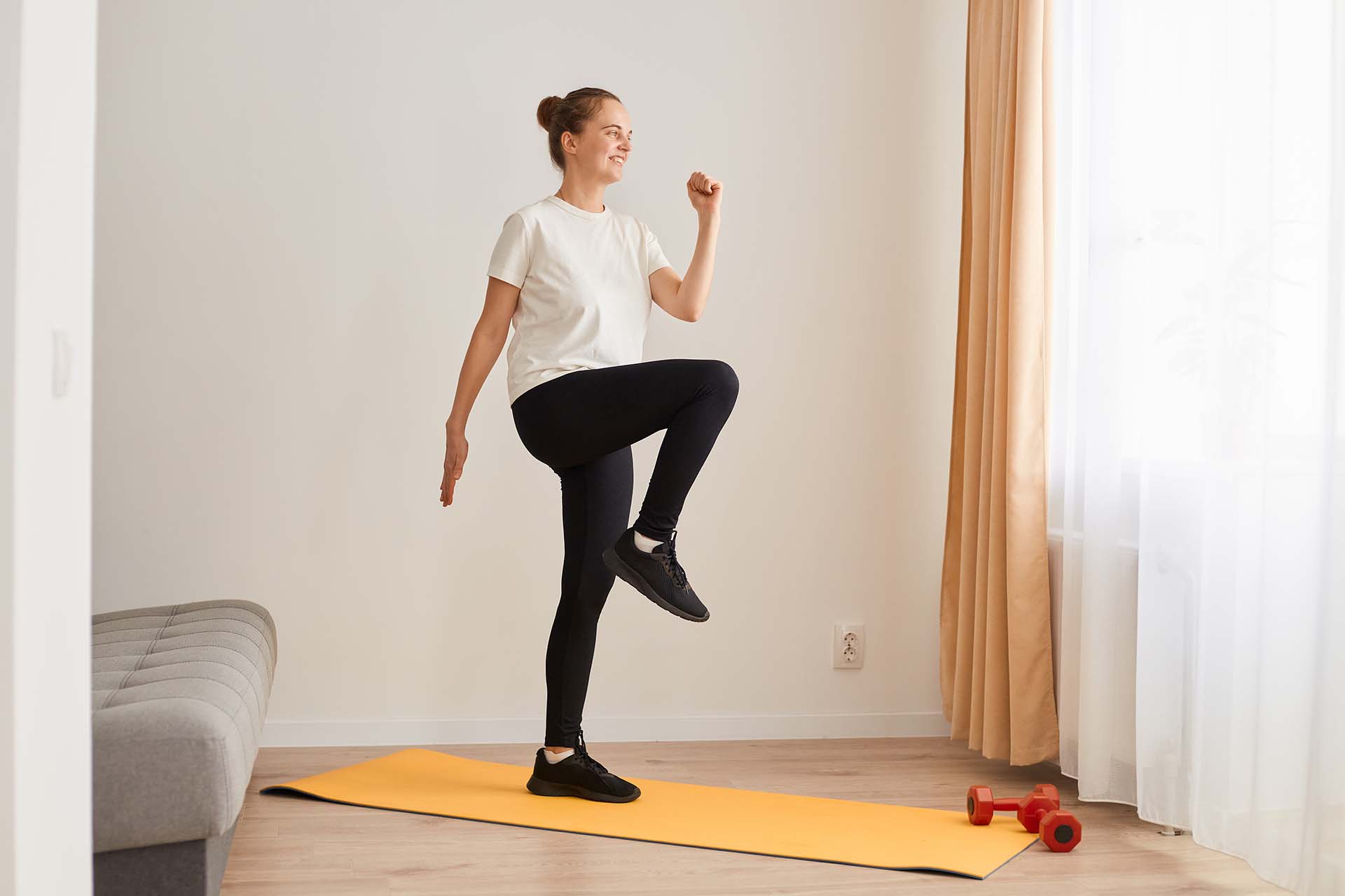 အသက်အရွယ်မရွေး လိုက်လုပ်နိုင်တဲ့ ဒီလေ့ကျင့်ခန်းက သွေးလည်ပတ်မှုကောင်းစေပြီး မကြာခဏလုပ်ဆောင်ပေးရင် ကိုယ်ခန္ဓာတစ်ခုလုံးအတွက် Cardio သဘောမျိုး လေ့ကျင့်ပြီးသား ဖြစ်စေပါတယ်။ လက်တွေ၊ ခြေထောက်တွေကို ဘယ်၊ ညာ လွှဲကာ တစ်နေရာတည်းမှာပဲ လမ်းလျှောက်ချီတက်တဲ့ပုံစံလုပ်ရမှာ ဖြစ်ပြီး ကလေးတွေကတော့ မြန်မြန်သွက်သွက် လေ့ကျင့်နိုင်ပြီး လူကြီးတွေမှာတော့ စင် သို့ ထိုင်ခုံနောက်မှီကို ကိုင်ပြီး လေ့ကျင့်နိုင်ပါတယ်။